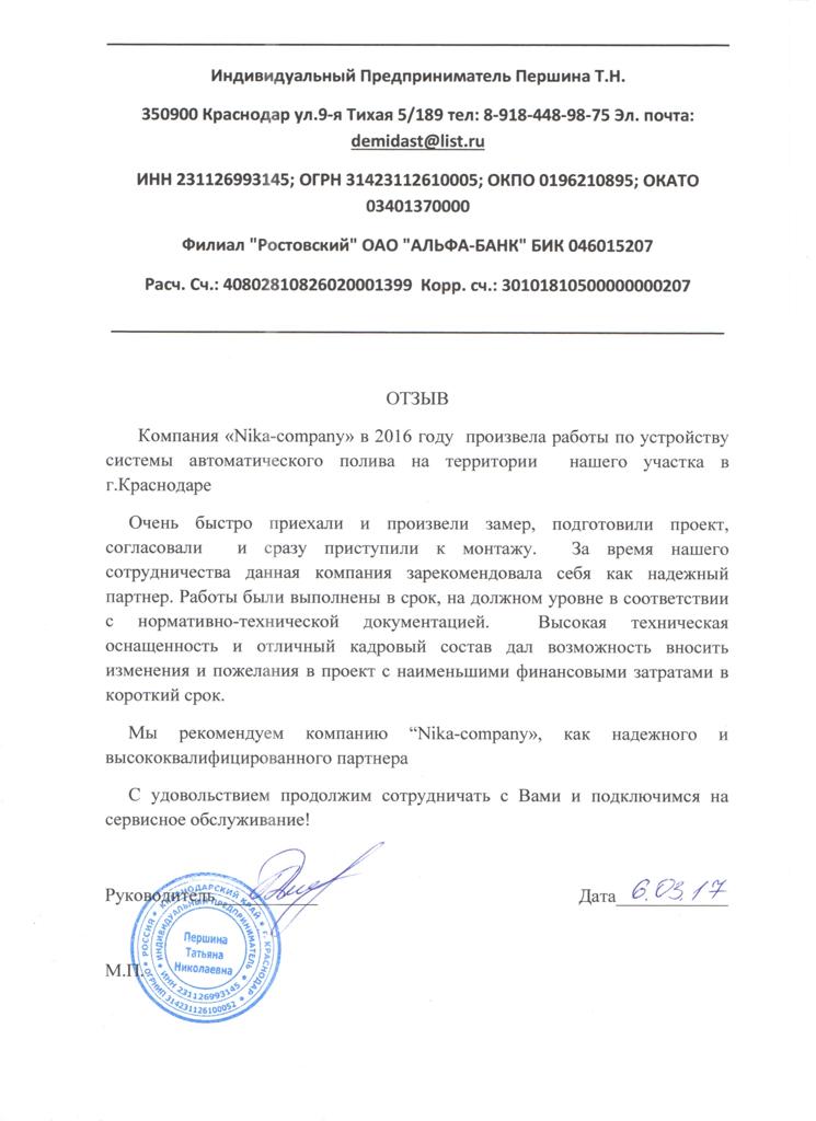 "Nika Poliv" это отдельное подразделение компании "Атмосфера-Юг" специализирующиеся на системах автоматического полива