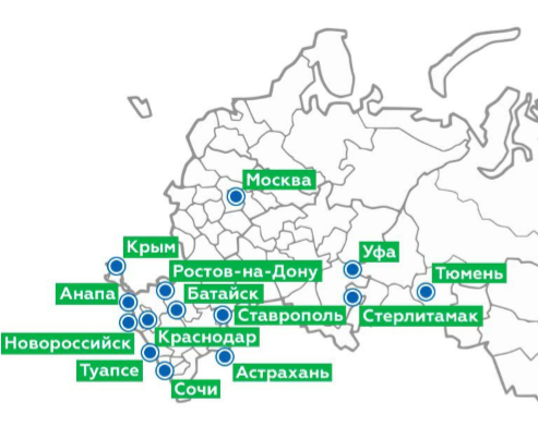 Москва, Ставрополь, Краснодар, Уфа, Анапа, Волгоград, Севастополь, Сочи, Астрахань, Ростов-на-Дону